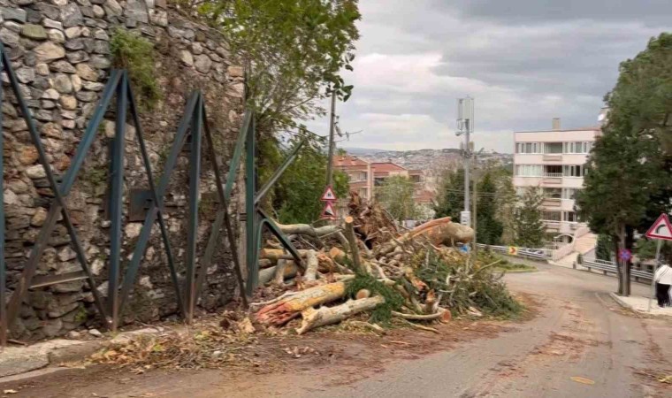 Öte yandan kent merkezindeki bir çok ağaçta fırtınaya dayamadı. Rüzgarın savurduğu iki ağaç kökünden koparken, o anlar cep telefonu kamerasına saniye saniye yansıdı.