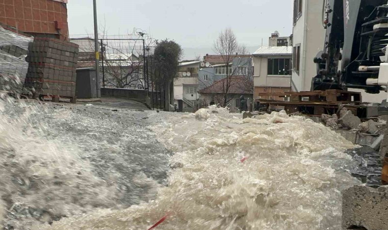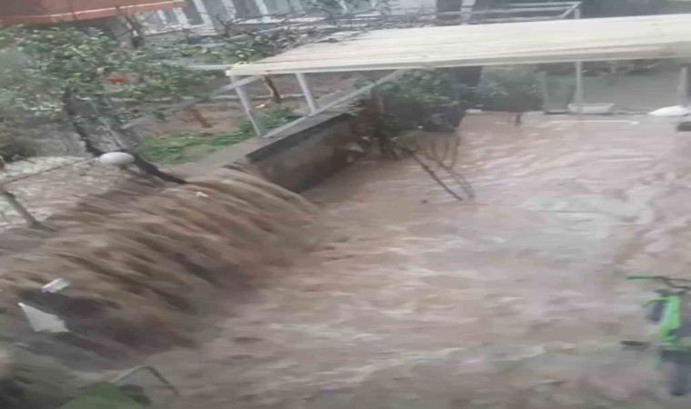 Bursa’da etkili olan sağanak nedeniyle yollar dereye döndü, bazı evleri su bastı.