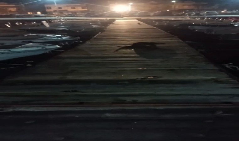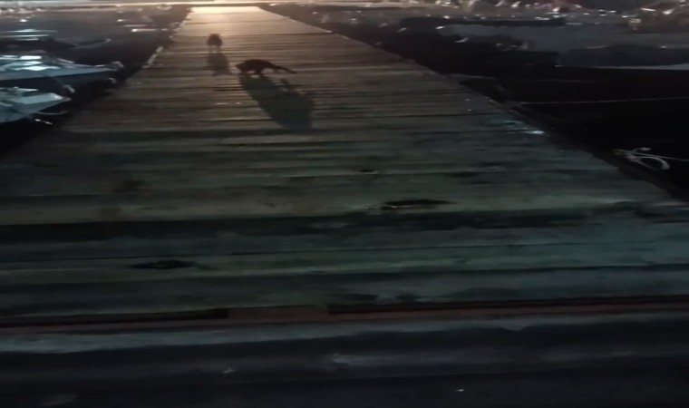 Bursa’da şiddetli fırtına sonrası su samurları ortaya çıktı. İskelede gördüğü kediyi kovalayan su samuru, renkli görüntüler oluşturdu. O anlar anbean amatör kameraya yansıdı.