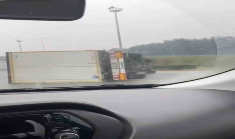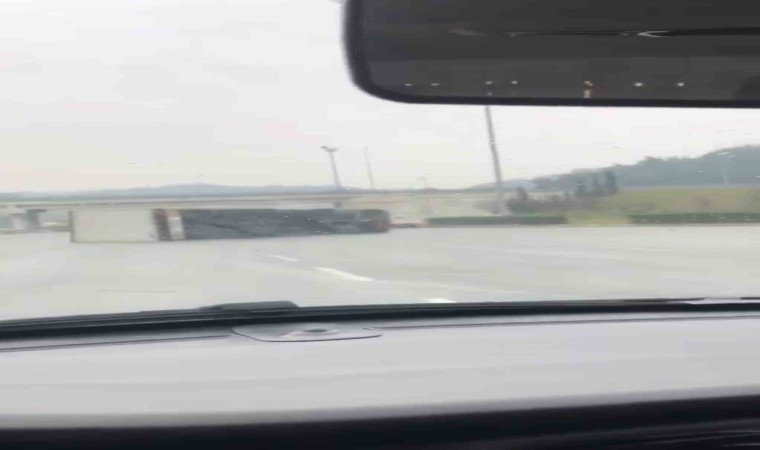 Kaza, merkez Osmangazi ilçesi Ovaakça Merkez Mahallesi’nde meydana geldi. Edinilen bilgiye göre, seyir halindeki tır sürücüsünün kontrolünden çıkarak devrildi. Sürücü kazayı hafif sıyrıklarla atlatırken otoban gişelerinde bekleyen polisler kazaya müdahale etti. Tırın çekici yardımıyla kaldırılmasının ardından trafik normal akışına döndü.