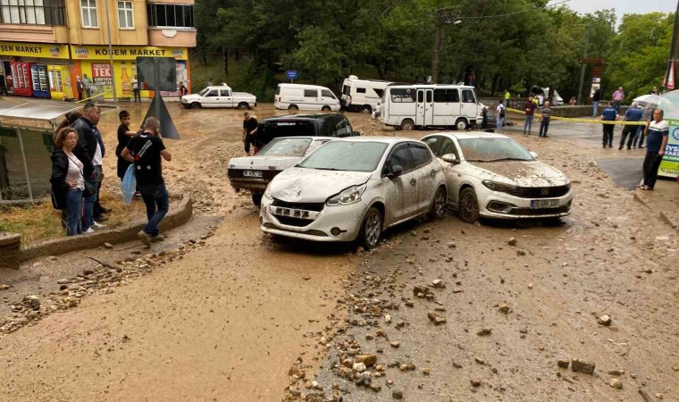 Bursa’da sağanak yağış sebebiyle birçok evi su basarken, taşan dereler sokaklarda park halinde bulunan araçları önüne kattı. Uludağ’ın eteklerindeki Yıldırım ilçesi Teferrüç Mahallesinde bulunan Karınca deresinden kopan taş parçaları sokağı yürünmez hale getirdi. Dereden taşan sulara dayanamayan otomobiller üst üste geldi. Kullanılmaz hale gelen otomobillerini gören vatandaşlar, yaşananları hayretler içerisinde izledi.