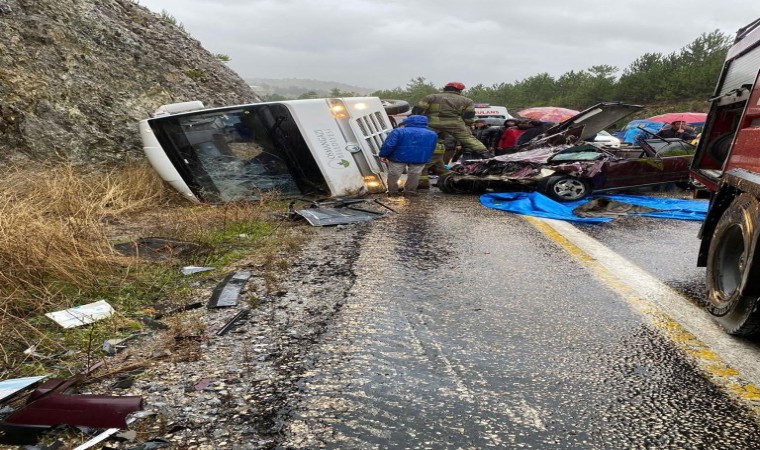 Bursa’da taziye yakınlarını taşıyan otobüs ile otomobil çarpıştı. Kazada 1 kişi hayatını kaybederken, 5 kişi de yaralandı.