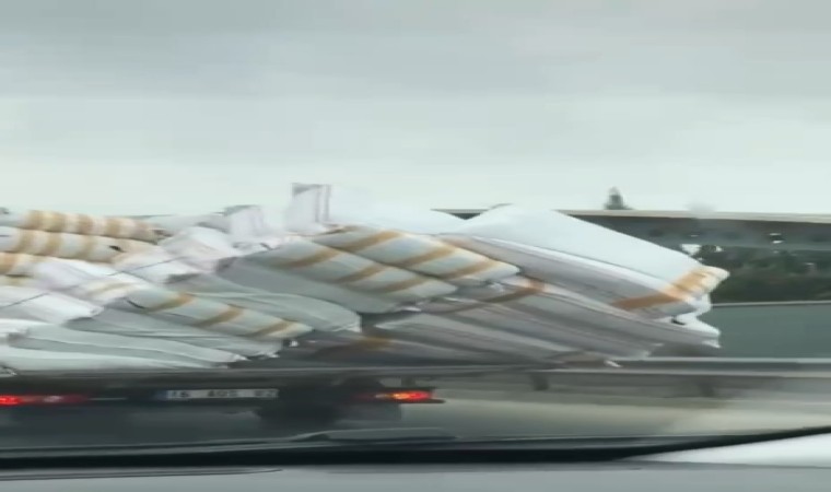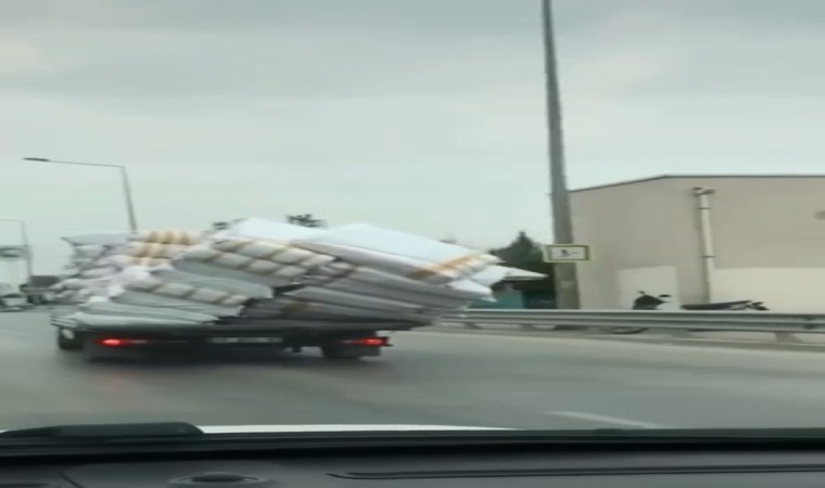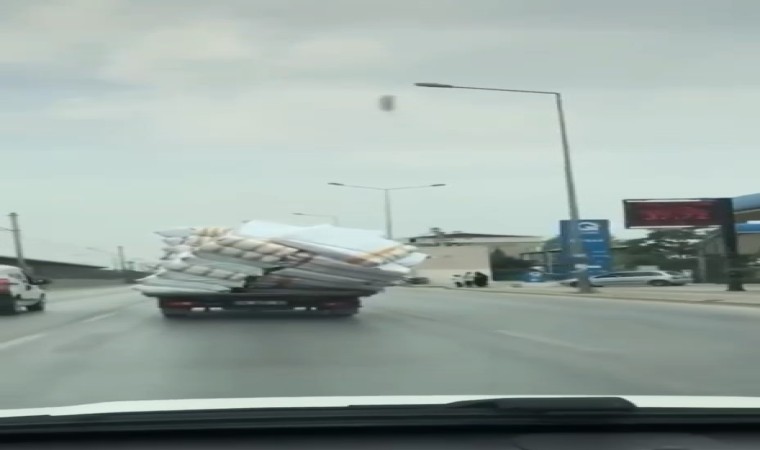 Bursa’nın Osmangazi ilçesinde trafikte tehlikeli taşımacılık yaşandı. Korku dolu anlar başka bir sürücünün kamerasına yansıdı.