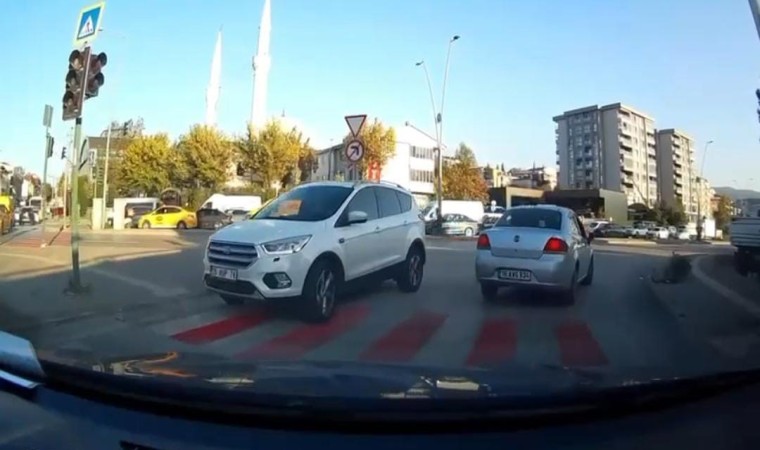 Bursa’da bir otomobil sürücüsü anayolda ters yöne girip ilerledi. Araçların kazayı kıl payı atlattığı anlar ise kameraya anbean yansıdı.