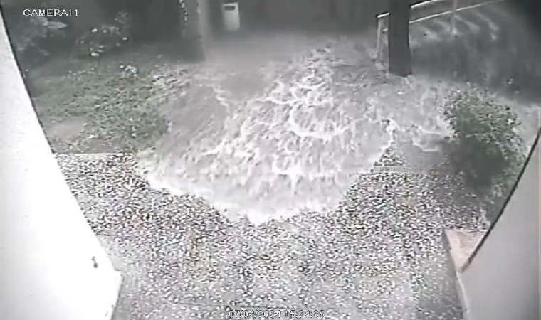 Sel esnasında suların siteyi basması da güvenlik kamerasına saniye saniye yansıdı