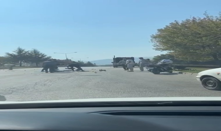 Bursa’nın İnegöl ilçesinde kamyonetten yere düşen armutlar, diğer sürücülerin yardımıyla birlikte kısa sürede toplandı.