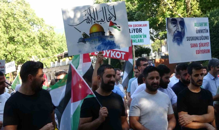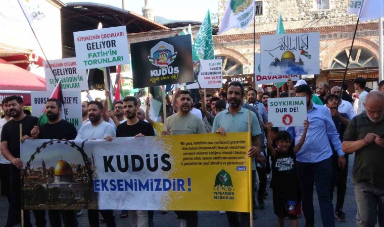 Bursa Ulu Cami önünde ikindi namazından sonra yüzlerce kişi Filistin’e destek için buluştu. Bursa Peygamber Sevdalıları Derneği öncülüğünde ellerinde Filistin bayrakları ve Gazze’ye destek pankartları taşıyan vatandaşlar, camiden Fomara Meydanı’na kadar yürüdü. Burada basın açıklaması yapan Hamza Velioğlu, ’’Bir asra yakın bir süredir siyonist işgalci çetenin Filistin halkına ve topraklarına yönelik uyguladığı sistematik işgal ve katliam devam etmektedir. Topyekûn bir soykırım hedefiyle hareket eden işgalci siyonistler, her geçen gün işgali genişletmekte, ilk kıblemiz Mescid-i Aksa’yı necis postallarıyla kirletmekte, haksız ve hukuksuz uygulamaları ile insan haklarını hiçe saymakta ve adeta bütün bir İslam alemine ve dünyaya meydan okumaktadır. Filistin halkı, İsrail’in gasp, işgal ve soykırımları karşısında meşru müdafaa hakkını kullanarak kendi topraklarını, vatandaşlarının canını ve İslam ümmetinin izzetini ve şerefini korumaktadır. Her gün yüzlerce şehit vermesine rağmen direnişi cephe cephe büyüten Filistin halkının şanlı direnişini selamlıyoruz. Biliyor ve inanıyoruz ki mazlumiyet değil, direniş erdemdir. Erdemli Filistin halkının haklı mücadelesinde muvaffak olması için dualarımız ile alemlerin Rabbinden nusretini istiyoruz. Yüce Allah yardımcıları olsun, onları muzaffer kılsın" dedi.