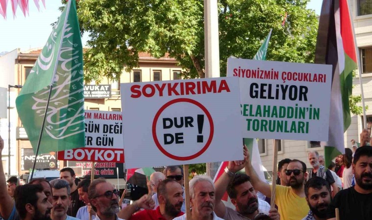 Bursa’da yüzlerce kişi, Filistin’de yaşanan soykırıma karşı yürüyüş yaptı.