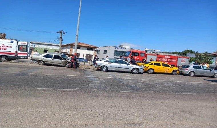 Bursa’nın Karacabey ilçesinde 5 otomobilin karıştığı zincirleme kazada 3 kişi yaralandı.