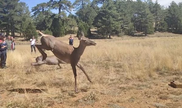 Bursa’dan Burdur’a getirilen 3 kızılgeyik doğaya bırakıldı