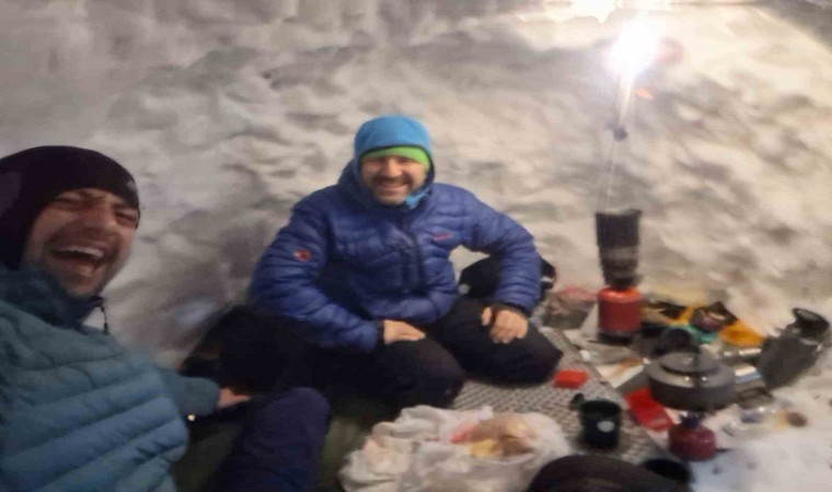 Olumsuz tüm hava şartlarına karşı güvenlik ve donanımlarını yanında taşıyan tecrübeli dağcılar, kar mağarasının girişini dar bir geçitle kapatarak kendilerini dondurucu soğuktan korurken yanlarında getirdikleri ocak ile yemeklerini yapmayı da ihmal etmedi.