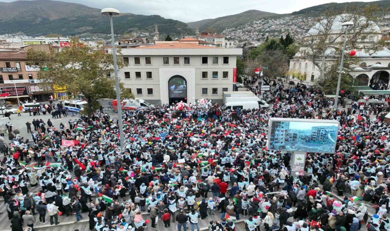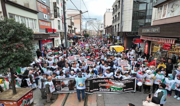 Bursa Büyükşehir Belediyesi’nin katkılarıyla Bursa Gönüllü Kuruluşlar Platformu tarafından düzenlenen etkinlikle yaklaşım 5 bin çocuk el ele vererek, 1,5 kilometrelik güzergahta sevgi zinciri oluşturdu. Ellerinde Filistin bayrakları, dövizler ve balonlarla yürüyüşe geçen çocuklar, 15 Temmuz Demokrasi Meydanı’nda toplanıp, soykırımcı İsrail’i protesto etti.