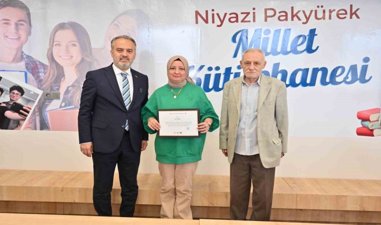Bursa Büyükşehir Belediyesi tarafından düzenlenen “Kütüphaneler Haftası Yılın Okuyucusu” hediye takdim töreni yapıldı. Niyazi Pakyürek Millet Kütüphanesi’nde gerçekleşen törene Bursa Büyükşehir Belediye Başkanı Alinur Aktaş, 22. dönem AK Parti Milletvekili Niyazi Pakyürek, AK Parti İl Başkan Yardımcısı Ufuk Ay, AK Parti Osmangazi İlçe Başkanı Adnan Kurtuluş, Anadolu Mahallesi Muhtarı Şaban Emin Durmaz, meclis üyeleri ve çok sayıda kitap kurdu katıldı.