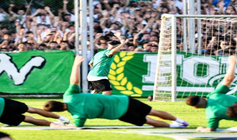 Antrenmana 2 bine yakın yeşil-beyazlı taraftar katılırken Bursaspor Başkanı Enes Çelik ve yönetimi de takip etti.