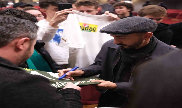 Bursaspor Başkanı Enes Çelik, futbolcular Ahmet İlhan Özek ve Muhammet Demir ile birlikte Mudanya Üniversitesine konuk olarak öğrencilerle keyifli bir söyleşi gerçekleştirdi.