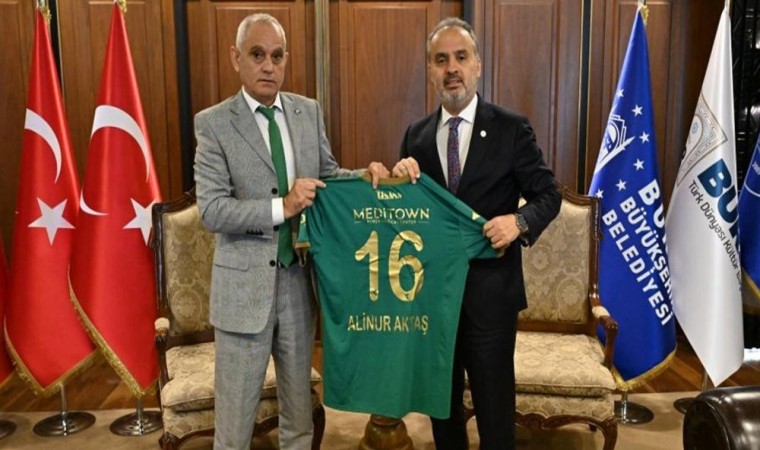 Bursaspor’dan yapılan açıklamada, “Başkanımız Recep Günay, İkinci Başkanımız Metin Genç, Yönetim Kurulu üyelerimiz; Sedat Topaloğlu, Ali Ekber Kartum, Ali Rıza San ve Savaş Sefa ile birlikte Bursa Büyükşehir Belediye Başkanımız Alinur Aktaş’ı makamında ziyaret etti. Ziyaretin sonunda Başkanımız Recep Günay, Aktaş’a isminin yazılı olduğu formamızı hediye etti” ifadeleri kullanıldı.