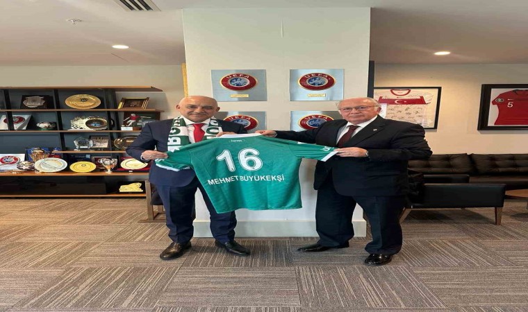 Bursaspor Başkanı Sinan Bür ve yönetimi, TFF Başkanı Mehmet Büyükekşi’yi ziyaret etti. Bu ziyarette TFF 1. Başkan Vekili ve aynı zamanda da BTSO Başkanı İbrahim Burkay da yer aldı.