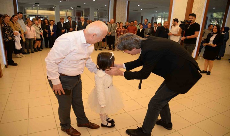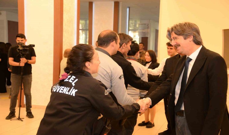 Törenin sonunda üniversite yöneticileri tüm katılımcılarla tek tek bayramlaştı.