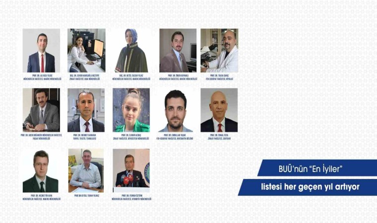 Tüm akademik kariyerleri boyunca yaptıkları çalışmalar dikkate alınarak oluşturulan en iyi akademisyenler sıralamasında yer alan BUÜ’lü bilim insanının sayısı ise bu yıl 14’e ulaştı. Listede yer alan akademisyenler ise şu isimlerden oluştu;