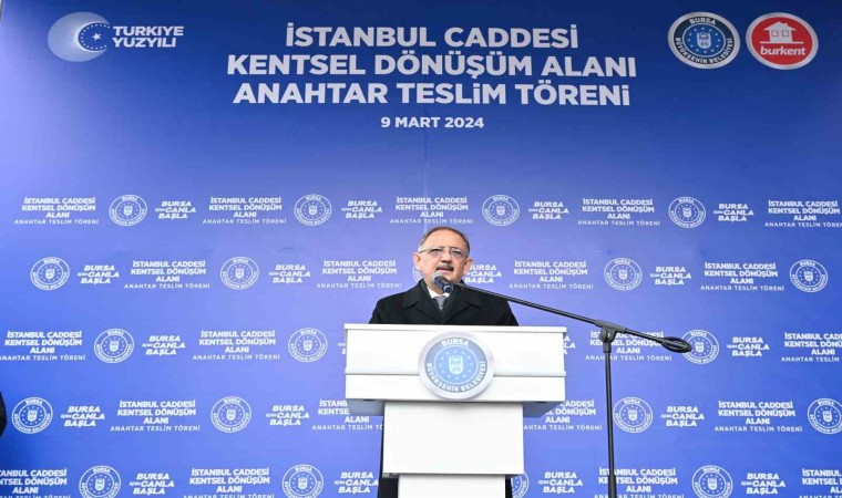 Bursa’daki kentsel dönüşüm çalışmalarının artarak devam etmesini temenni eden Bakan Özhaseki, 10 binden fazla konutun dönüşümü için bir arada olduklarını hatırlatarak "Osmangazi İlçemizin Altınova mahallesinde ve kentin kuzey yönden girişi niteliğindeki İstanbul Caddesi’nin iki yakasını kapsayan 160 hektarlık alanda Bursa Büyükşehir Belediyemiz tarafından 7 etaptan oluşan kentsel dönüşüm projemizin 1. etabında anahtar teslim töreni gerçekleştireceğiz. Bu alandaki vatandaşlarımızın tamamının rızasını almıştık. Bugün de 74 konutun, 19 ofisin ve 3 işyerinin anahtarlarını hak sahiplerine teslim etmenin gururunu yaşıyoruz. Bu alanda ayrıca 1.252 konutun daha yapım çalışmaları başladı. İnşaatların tamamlanması ile bu alanda toplamda yaklaşık 3.500 konut üretmiş olacağız. Bu kapsamda çalışmalarından ötürü Büyükşehir Belediye Başkanımızı kutluyor, hak sahibi vatandaşlarımıza da hayırlı olsun” dedi.