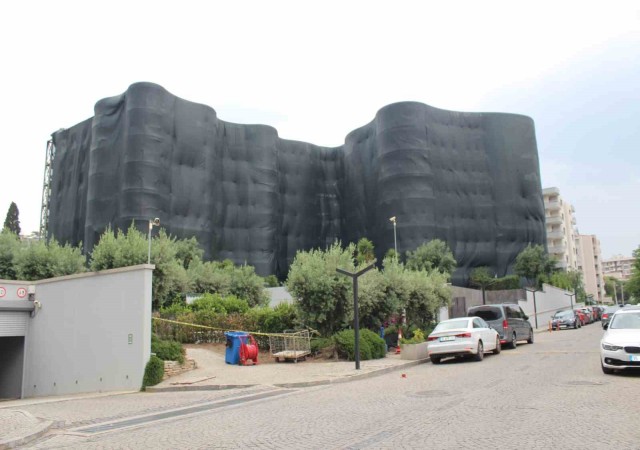 LÜKS BİNANIN ÜZERİ TAMAMEN ÖRTÜLÜRKEN, MÜHENDİSLERİN NUMUNE ALDIĞI ÖĞRENİLDİ.