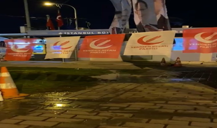 Büyükada’da kanalizasyon patladı, seçim çadırları pis suyun içinde kaldı.