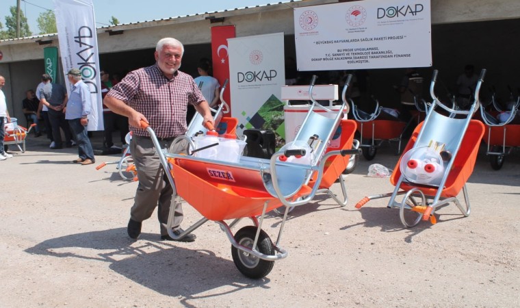 Yüzde 70 DOKAP, yüzde 30 çiftçi katkılı sağlık paketi içerisinde yer alan 20 adet vitamin, 20 adet mıknatıs, 1 litre tentürdiyot, 1 adet doğum arabası, 1 adet temizlik arabası, 1 adet süt ölçüm kovası ve 2 adet biberon 500 çiftçiye düşük maliyetle verildi.