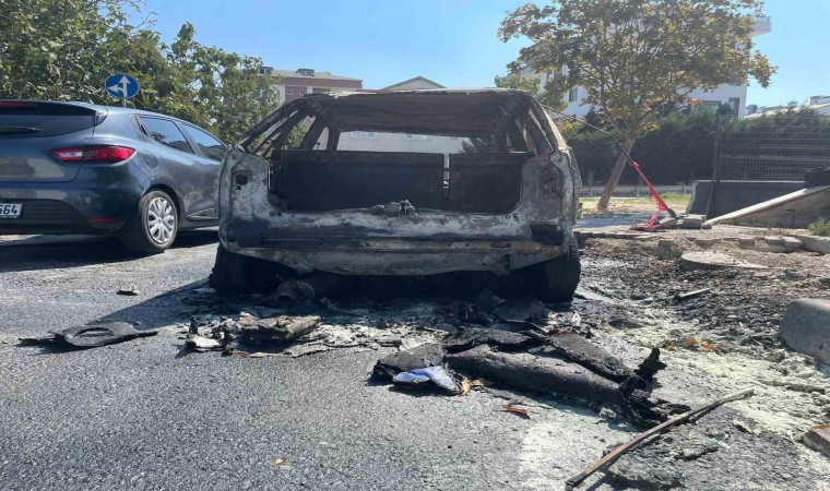 Büyükçekmece’de park halindeyken bir anda alev alan araç, itfaiye tarafından söndürüldü. Aracın yandığı anlar cep telefonu kamerası ile kaydedildi.