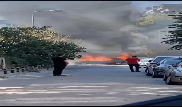 Büyükçekmece’de park halindeki otomobil alev alev yandı
