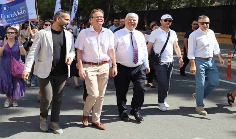 “Bu önemli haftanın ilk gününü İzmir’de kutluyor olmaktan dolayı büyük bir mutluluk duyduğunu vurgulayan Büyükelçi Nikolaus Meyer-Landrut, “Çünkü şehir gerçekten uzun bir süredir bu hareketlilik haftasını kutlayan şehirlerden bir tanesi. Aynı zamanda yeşil dönüşümlü de hareketliliğe katkıda bulunuyor İzmir. Avrupa Birliği olarak Biz de İzmir’in bu çabalarını desteklemeye çalışıyoruz” diye konuştu.