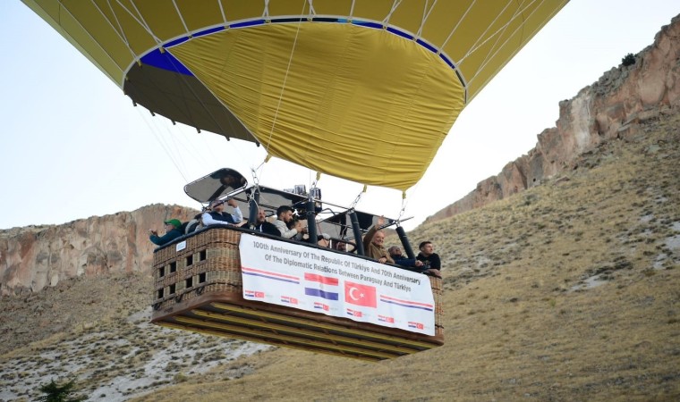 Paraguay’ın Ankara Büyükelçisi Ceferino Valdez ile bazı büyükelçi ve diplomatlar, Türkiye ile Paraguay ilişkilerinin 70’inci yılına özel hazırlanan sıcak hava balonu ile Kayseri’deki Soğanlı Vadisi semalarında uçtu. Büyükelçi Valdez, “Bu muhteşem ülke ile sahip olduğumuz dostluktan ötürü onurluyuz ve gururluyuz. Kapadokya tüm Paraguayların kalbine, gönlüne çok yakın bir bölgede. Burada olmaktan dolayı çok gururluyuz. Her geçen gün burada daha fazla Paraguaylı turist ağırlıyoruz" dedi.