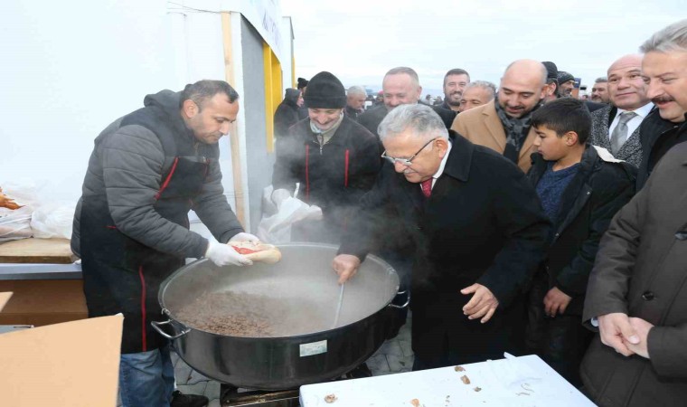 Başkan Büyükkılıç, Canlı Hayvan Borsası ve Pazar Yeri’nde Kayseri Kırmızı Et Üreticileri Birliği tarafından esnafa kavurma ikram edilen kazanların başına geçerek besici esnafına kavurma ikramı yaptı.