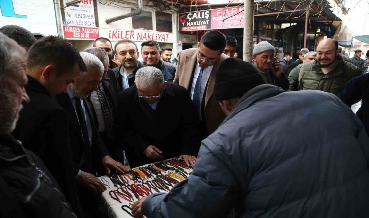“Sizlerle hep görüşüp, dillendirdiğimiz Lojistik Merkezimiz için yerini hazırladık. 470 dönümlük Ankara yolunda, Kızılırmak’a varmadan, orada inşallah bir Lojistik Merkezi projemizi hazırladık. Burası kamyoncularımızı, tırcılarımızı toparlayıp, içerisinde sosyal tesisleri ile hatta gümrükleme hizmetleriyle, kamu hizmetleri verecek, yeme içme mekânları ve istirahat için otelleri olan devasa bir proje olacak. Biz bu projemizi hazırladık, burasını tertemiz oraya taşıyacağız. Burada yıllardır bir aradayız, bundan sonraki süreçte bu çalışmayı yapacağız. Sizin de gelip, hatırınızı sormak, tavsiyelerinizi dinlemek olmazsa olmazımızdır.”