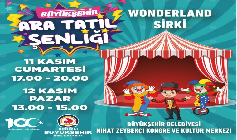 Denizli Büyükşehir Belediyesi, 2023-2024 eğitim-öğretim yılı birinci dönem ara tatilinde çocukların tatil keyfini doyasıya yaşayacağı bir şenlik programı hazırladı. 11 Kasım Cumartesi ve 12 Kasım Pazar günü düzenlenecek Büyükşehir Ara Tatil Şenliği 2 gün boyunca Büyükşehir Belediyesi Nihat Zeybekci Kongre ve Kültür Merkezi’nde gerçekleştirilecek. Saat 11.00’de başlayacak Büyükşehir Ara Tatil Şenliği gün boyu birçok etkinlik ve gösterilerle çocuklara unutulmaz bir hafta sonu yaşatacak. Çocuklar ve yetişkinler ünlü Wonderland Sirki’nde benzersiz yetenekleri izleyecek. 11 Kasım Cumartesi günü saat 17.00 ve 20.00, 12 Kasım Pazar günü ise saat 13.00 ve 15.00’te sahne alacak Wonderland Sirki’nde illüzyonist, çocuk animatörü ve yabancı uyruklu akrobatlar nefes kesen performanslarını sergileyecek.