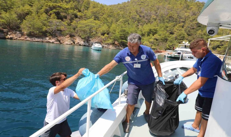 Muğla’nın Gökova Körfezi, Fethiye Göcek-Dalaman koylarında deniz araçlarından atık alımı yapan Muğla Büyükşehir Belediyesi’nin 7 atık alım teknesi, haftalık belirlenen program çerçevesinde her gün mavi deniz, temiz kıyılar için demir alıyor.