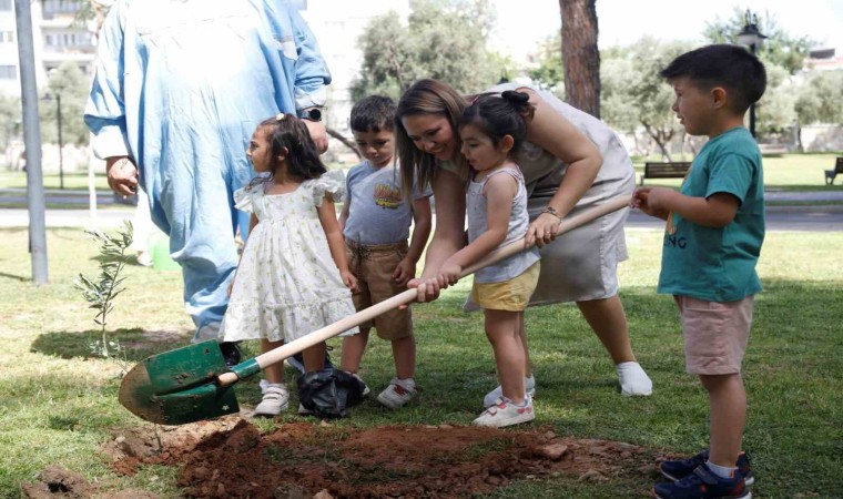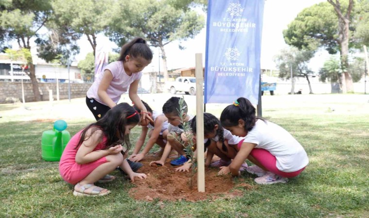 Aydın Büyükşehir Belediyesi’nin çocuk gelişim merkezine devam eden minikler, Dünya Çevre Haftası’nda 100 zeytin ağacı dikti.