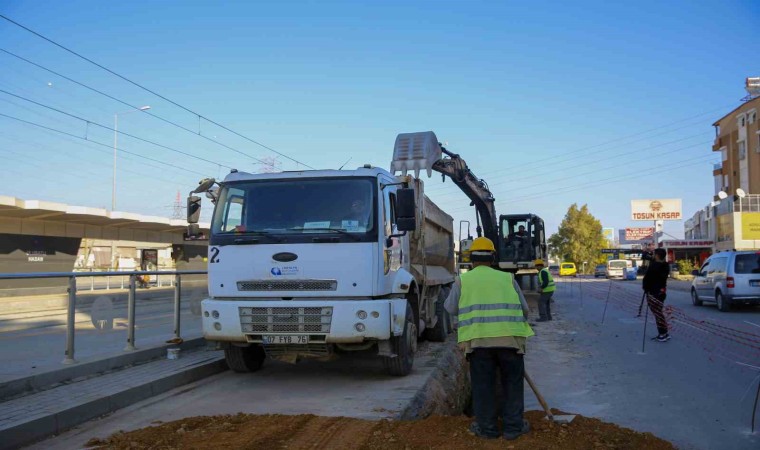 Antalya Büyükşehir Belediyesi, Varsak Süleyman Demirel Bulvarı’nda içme suyu isale hattında yenileme çalışması yapıyor.