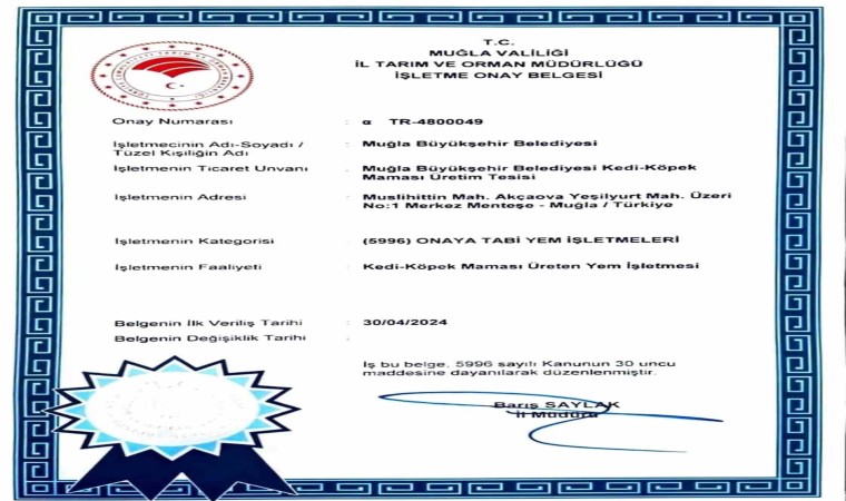 Muğla Büyükşehir Belediyesi, İl Tarım ve Orman Müdürlüğü’nden işletme onay belgeli Kedi-Köpek Maması Üretim tesisi ile can dostlar için mama üretmeye devam ediyor. Sahip olduğu ISO ve HACCP belgeleri ile Türkiye genelinde yerel yönetimlerde işletme onay belgeli üçüncü, Muğla’da da tek olan Büyükşehir Belediyesi Kedi-Köpek Maması Üretim tesisi bugüne kadar piyasa değeri 6 Milyon TL olan 20 bin 217 kg mama üretimi gerçekleştirerek sokak hayvanları ve geçici hayvan bakımevinde bulunan can dostlara dağıttı.