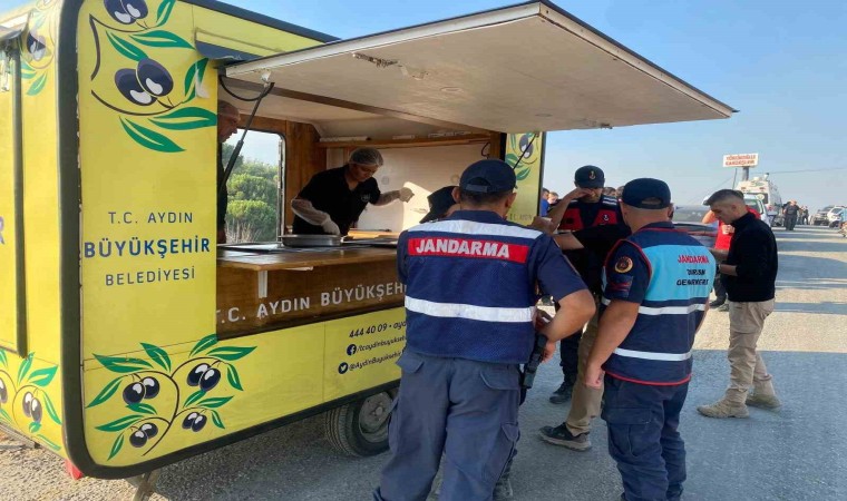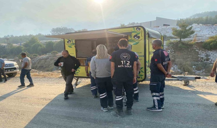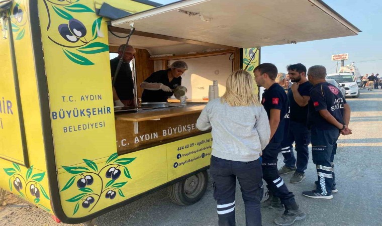 Aydın Büyükşehir Belediyesi Bozdoğan’daki yangın bölgesinde ilk andan itibaren, hem alevlerle mücadele etti, hem de bölgede kumanya dağıtarak söndürme bölgedeki çalışanlara destek veriyor.