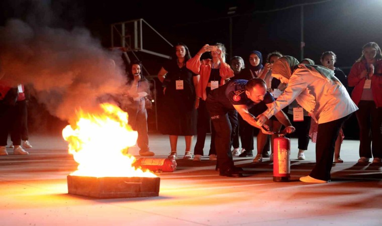 Sakarya Büyükşehir Belediyesi, gönüllü ekipler ve gençlere sunduğu yangın eğitimi programı çerçevesinde Tekirdağ’dan gelen 40 kişilik gence yangın söndürme, yanıcı maddelere yaklaşım ve ekipman kullanımı konusunda önce sözlü eğitim verdi, arazide alevlerin arasında uygulama tekniklerini gösterdi.
