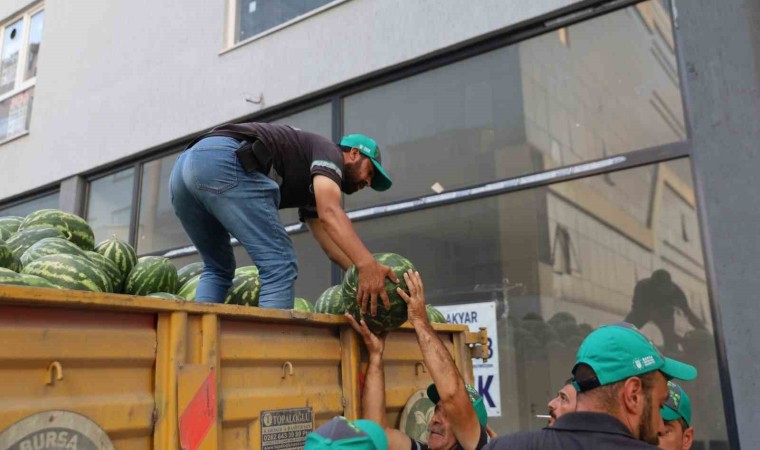 Bursa Büyükşehir Belediye Başkanı Mustafa Bozbey’in talimatıyla Mustafakemalpaşalı ve Karacabeyli çiftçilerden değerinde alınan kavun ve karpuzlar, kentin farklı noktalarında vatandaşlara ücretsiz olarak dağıtılmaya başlandı.