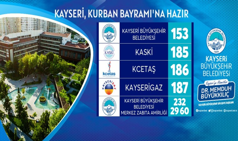 Kurum ve kuruluşlar, her yıl olduğu gibi bu Kurban Bayramı'nda da vatandaşların huzurlu ve sağlıklı bir bayram geçirmeleri için yoğun bir şekilde çalışmalarını sürdürüyor. Kayseri Büyükşehir Belediyesi de bu bayramda vatandaşların sorunsuz bir bayram yaşayabilmeleri için çeşitli tedbirler almış durumda.