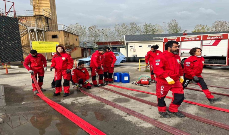 Kocaeli Büyükşehir Belediyesi İtfaiye Dairesi Başkanlığı tarafından AKUT ekibine yangın önleme ve söndürme teknikleri eğitimi verildi.