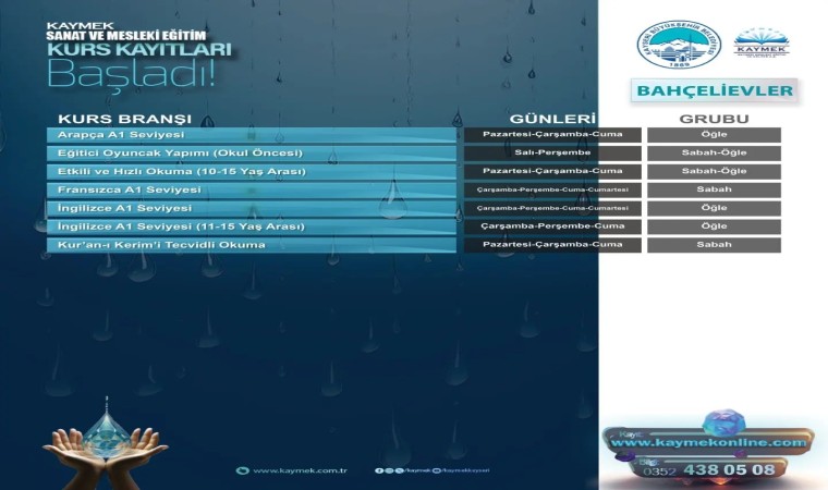 KAYMEK kursları ile ilgilenen vatandaşlar detaylı bilgiye 0352 431 31 00 numaralı telefon üzerinden erişebilecek ve kayıt işlemlerini www.kaymekonline.com internet adresi üzerinden gerçekleştirebilecek.