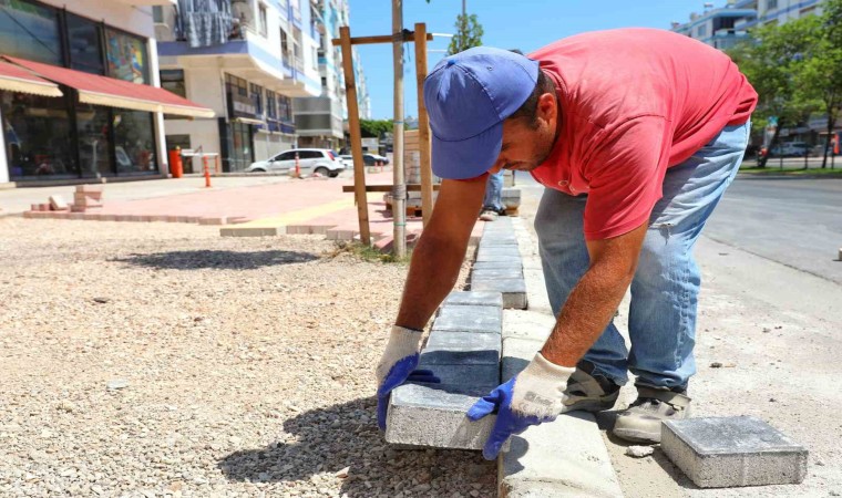 Antalya Büyükşehir Belediyesi, Mevlana Caddesi üzerinde çift yönlü kaldırım yenileme çalışması yapıyor.