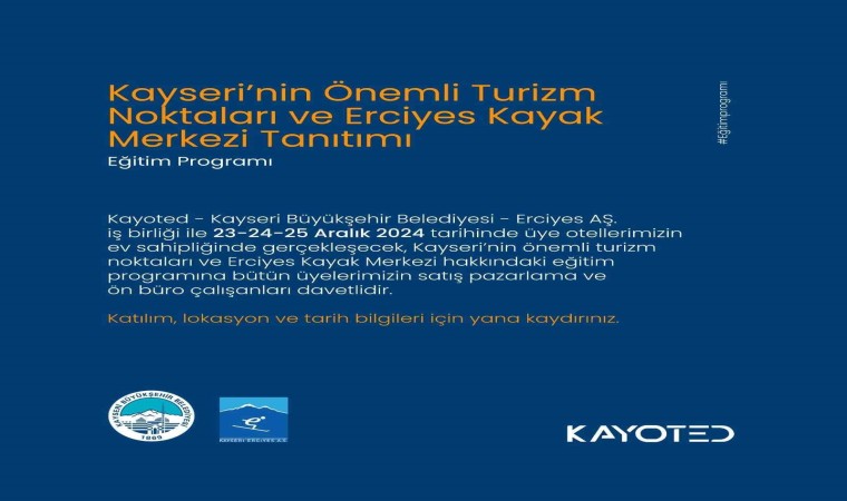 Kayseri Otelciler Derneği (KAYOTED) ile iş birliği halinde şehre gelen yerli yabancı turistlere, Kayseri’nin doğa, tarih ve turizm bakımından zengin bir şehir olduğunu ifade etme noktasında otel misafirlerinin ilk başvuru kaynağı olduğu ve bu anlamda büyük bir rol üstlenen otel çalışanlarının bilgilendirilmesinin hedeflendiği bilgilendirme çalışmasında, şehrin doğa, tarih ve kültürel kapsamdaki turizme dönük zenginlikleri anlatılacak.