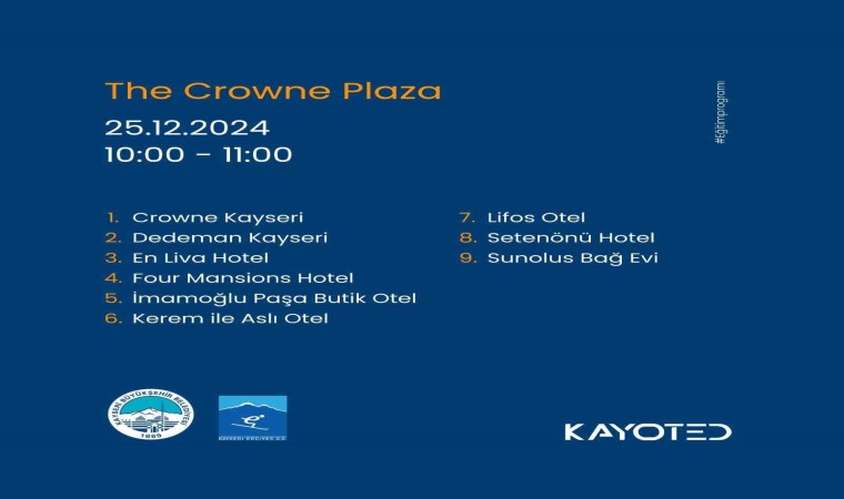 Ayrıca Kayseri Büyükşehir Belediyesi Turizm Şube Müdürü Fehmi Gündüz de faaliyet kapsamında otellerin personeline, Kayseri’nin zengin tarihi hakkında bilgiler aktaracak.