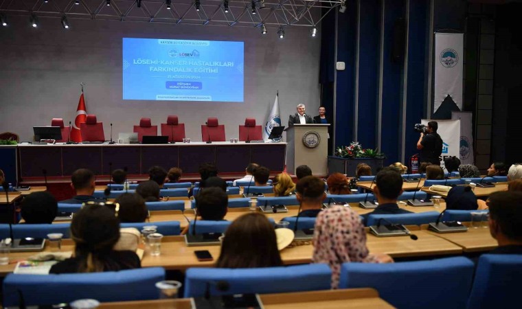 Lösemili çocuklara hizmet eden, onlara dokunan Türkiye’deki hemen her ilde faaliyetlerini eğitim, yardım gibi hizmetlerle insana dokunan çalışmaları ile hayata dokunan bir vakfın bir eğitim çalışmasında beraber olduklarını ifade eden Öztürk, “Kapılarımızı açtık, gönlümüzü açtık. Biz de aynı duygularla, bu çocuklarımıza ya da rahatsızlığa düçar olmuş kişilere nasıl hizmet edebiliriz, onun kaygısı içerisinde çalışmalarımızı yürütürken, bir de bilinçlendirme çalışması olarak, eğitim faaliyeti olarak, lösemi ile mücadele ile ilgili Kayseri il koordinatörlüğündeki halkla ilişkiler sorumlusu Sayın Murat Bey’den bu konu ile ilgili bilgileri alacağız” diyerek, söz konusu hastalığın çaresi olduğunu ve LÖSEV’in her zaman yanlarında olacaklarını vurguladı. Sunulan eğitim imkânından dolayı Başkan Büyükkılıç ve Genel Sekreter Yardımcısı Serdar Öztürk’e teşekkür eden Lösemili Çocuklar Sağlık ve Eğitim Vakfı İl Koordinatörü Sibel Kurşun da “LÖSEV ve kanser farkındalığıyla ilgili seminer vermek istedik. Kanser artık toplumumuzun bir gerçeği, en son Haziran ayında yapılan bir araştırmaya göre ülkemizdeki kanser oranı yüzde 38 gibi yüksek bir rakama ulaşmış durumda. Bizler bu konuda hem neler yapıyoruz hem de nelerle karşılaşabiliriz? Bunlar hakkında bilgi vermek istedik” ifadelerini kullandı.