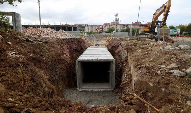 Sakarya Büyükşehir Belediyesi yeni yerleşim yerleri ve gelişmekte olan bölgelerde revizelere giderek hatların gelişmesini sağlıyor. Bu çerçevede Fen İşleri Dairesi Başkanlığı, Camili Mahallesi’nde Resmi Daireler Kampüsü’nün hemen yanına inşa edilecek yeni adliye binası için devreye girdi. Proje alanında 35 metrelik duble yol altında yer alan 1 metrekarelik 3 gözlü yağmur suyu menfez büyütülerek 2,5x2,5 metre ebatlı yeni menfez 4,5 metre derinlikte yer alan 1400 santimetre çaplı mevcut yağmursuyu hattına bağlanıyor.
