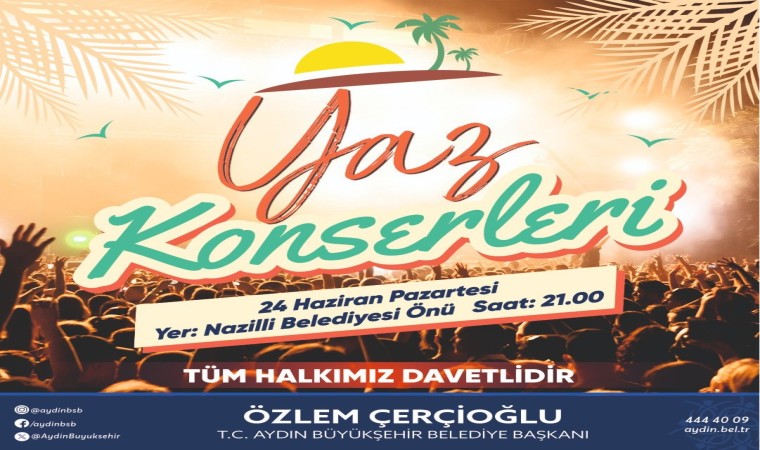 Aydın Büyükşehir Belediyesi, tüm Aydınlıları Nazilli ilçesinde bugün başlayacak olan yaz konserlerine davet etti.